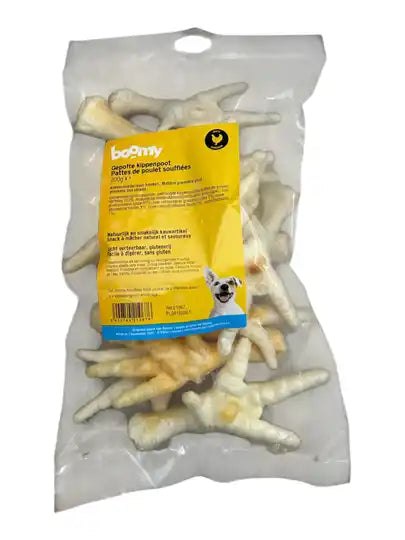 Boomy Gepofte KippenpootBoomy Gepofte Kippenpoot is een natuurlijke en licht verteerbare kauwsnack voor je hond. Het pakje bevat 200 gram van deze smakelijke kippenpoten, die glutenvrij zijn, waardoor ze ideaal zijn voor honden met een glutenintolerantie. Deze gepofte kippenpoten bieden langdurig kauwplezier en zijn een verantwoorde traktatie die bijdraagt aan een gezond gebit!