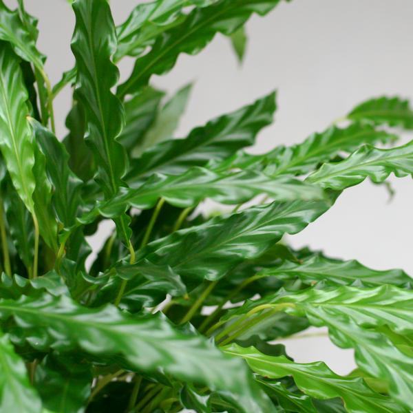 De Calathea Rufibarba is een opvallende groene kamerplant met lange, dunne bladeren die bekend staan om hun fluweelachtige textuur. Deze bijzondere textuur heeft de plant de bijnaam ‘fluwelen Calathea’ opgeleverd.
